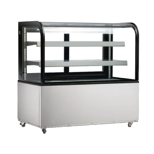 Pastelero de 400L con temperatura de 2-8°C, estantes ajustables, LED, vidrio templado y sistema de refrigeración ventilado.